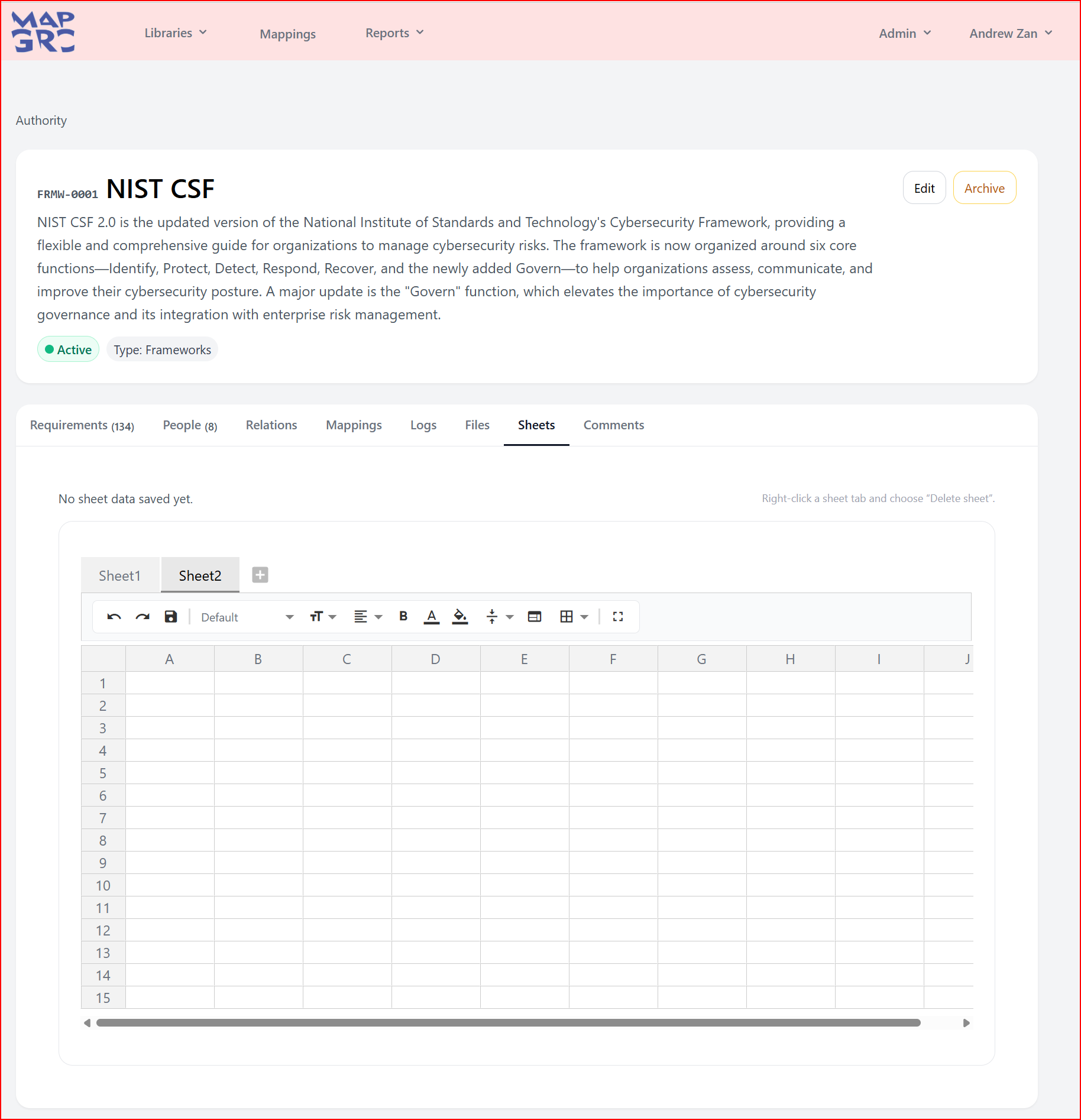 The final goal is a “Sheets” tab that feels native, loads seamlessly, stores changes automatically, and supports multiple spreadsheet tabs within it. With the right design, this becomes a major value-add for your GRC platform—turning each Record or Requirement into a flexible, semi-structured workspace that adapts to whatever the user needs.